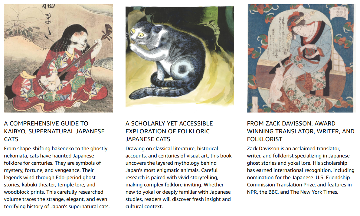 Davisson’s book Kaibyo: The Supernatural Cats of Japan was selected by St. Petersburg college as their SPC Reads book of 2024, joining such titles as Becoming by Michelle Obama and I am Malala by Malala Yousafzai. His books have been translated into multiple languages.